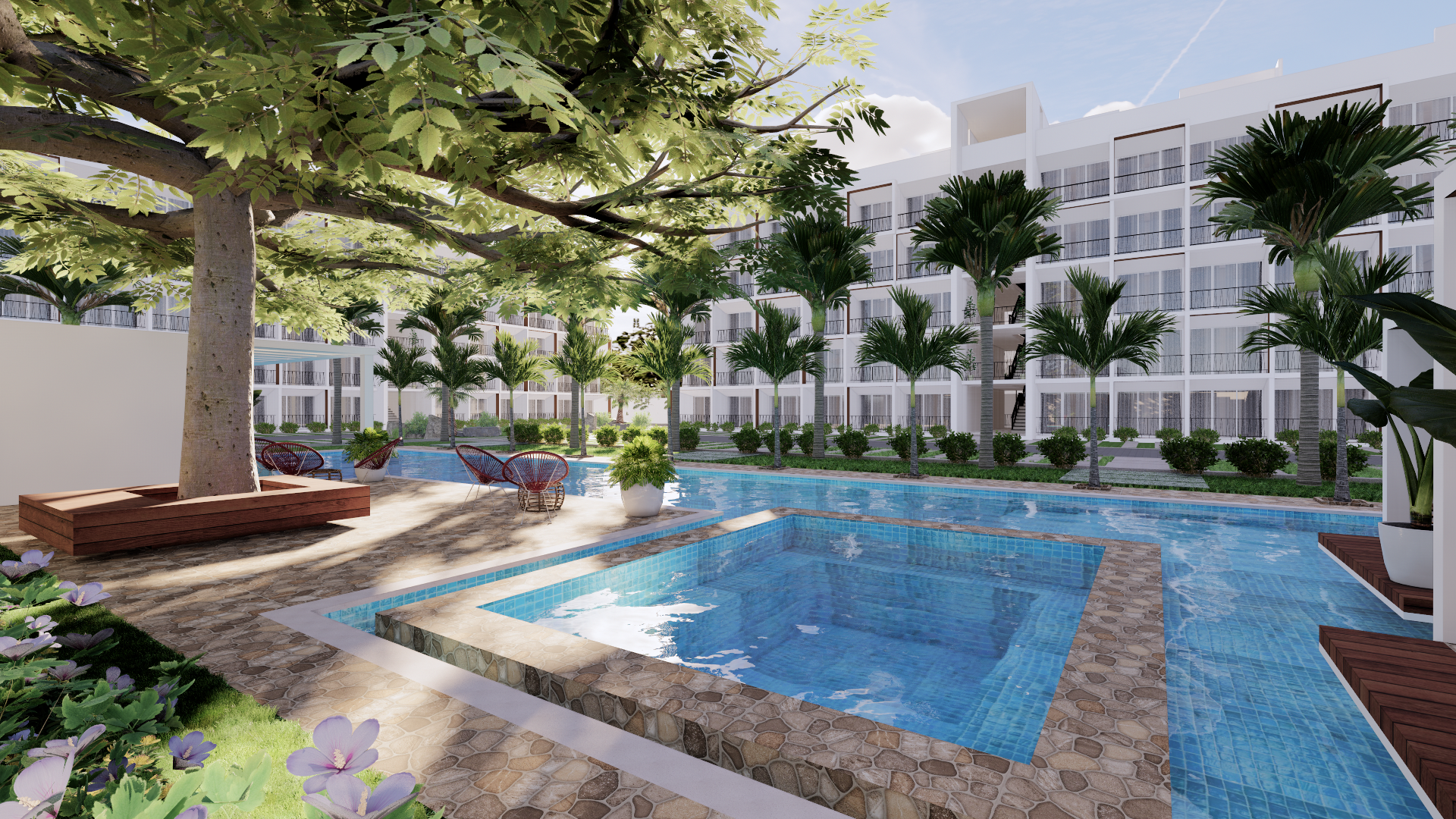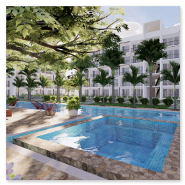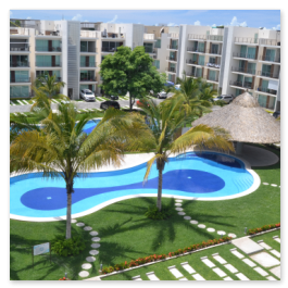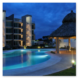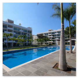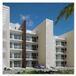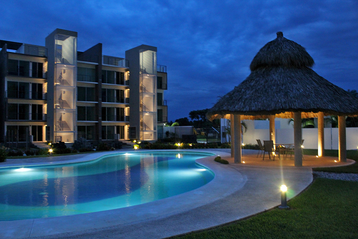 Dentro del plan maestro de Residencial Diamante concebimos condominios verticales y el flujo de ventas nos catapultó a construir el Condomino Lila, repetimos el concepto para mantener el estilo arquitectónico en 7 torres de 8 departamentos cada una. Roof garden privado así como alberca, palapa y jardines.