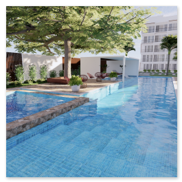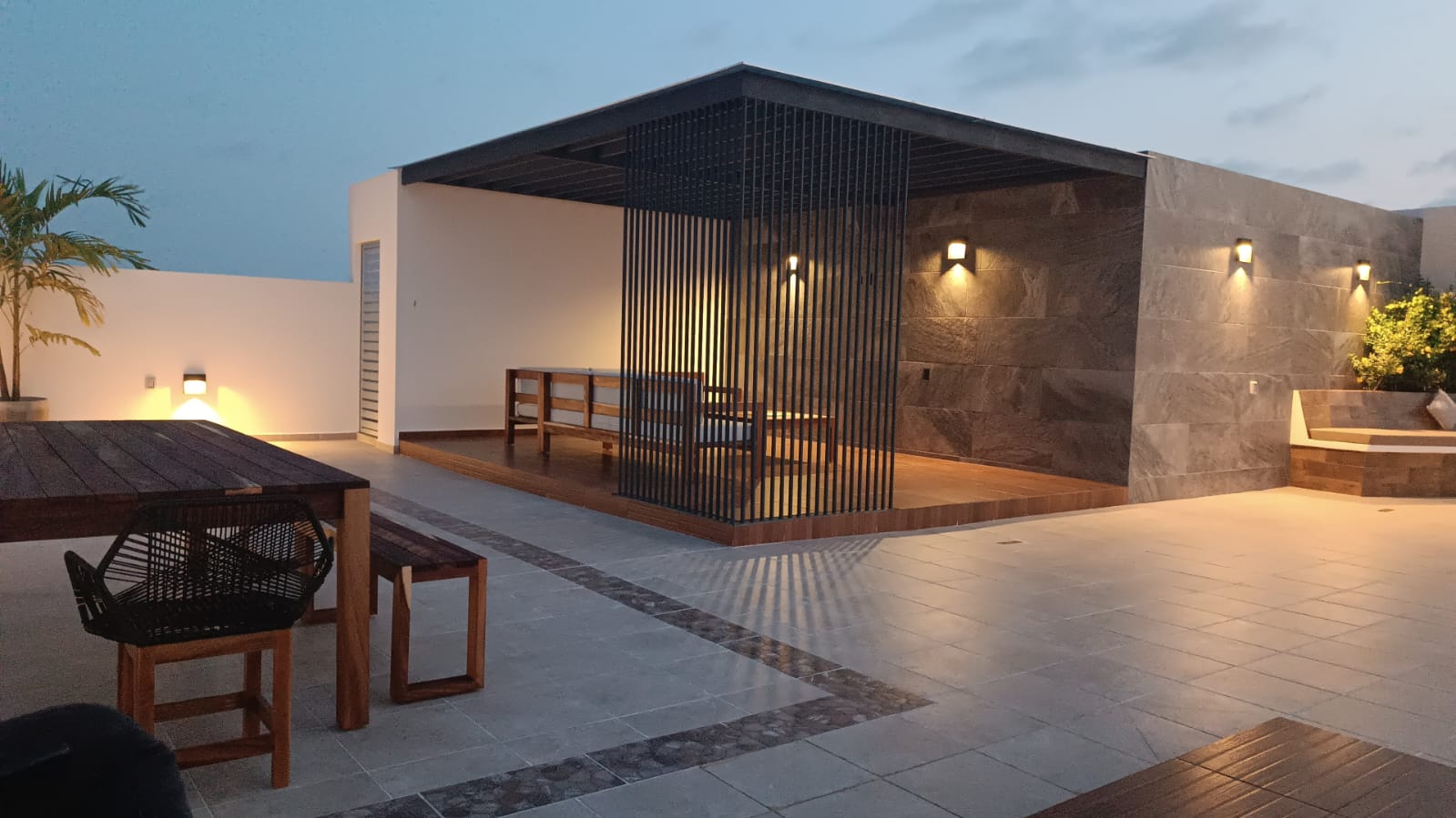 En Residencial Diamante desarrollamos un nuevo concepto de condominio, en donde añadimos áreas comunes generales que dan mayor valor a las propiedades. Un Roof Garden de uso general, con área de jacuzzis, bar y área de asadores y zona de comida.