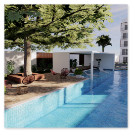 En 2023 terminamos el proyecto ejecutivo del Condominio Areca, donde replanteamos el concepto de Jazmín con departamentos con Roof Garden privado, y continuamos con el concepto de área compartida. El proyecto está terminado y listo para inicio de obra.